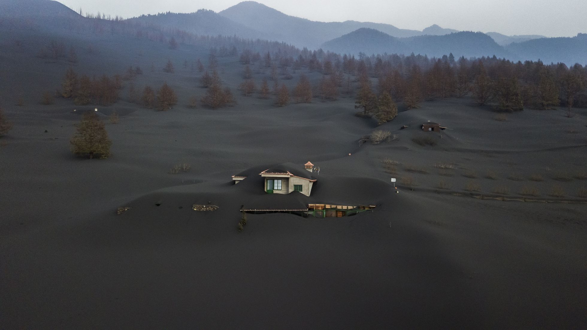 - Vista aérea desde dron de viviendas cercanas al volcán de cumbre Vieja, desde Las Manchas, e la Isla de La Palma. CARLOS ROSILLO.
